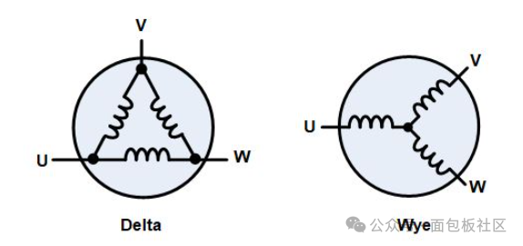 無刷電機的三個繞組通常以“星形”或“三角形”方式連接。無論哪種連接,都有三根線連接到電機,而且其驅動技術和波形都是相同的。