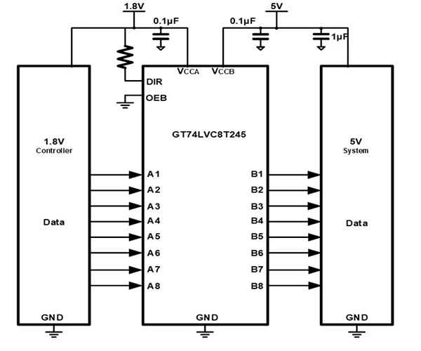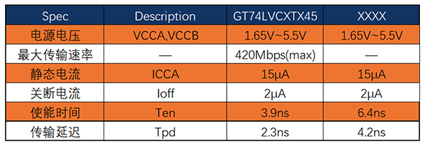 • VCCA和VCCB工作電壓為1.65V至5.5V,支持寬電壓輸入