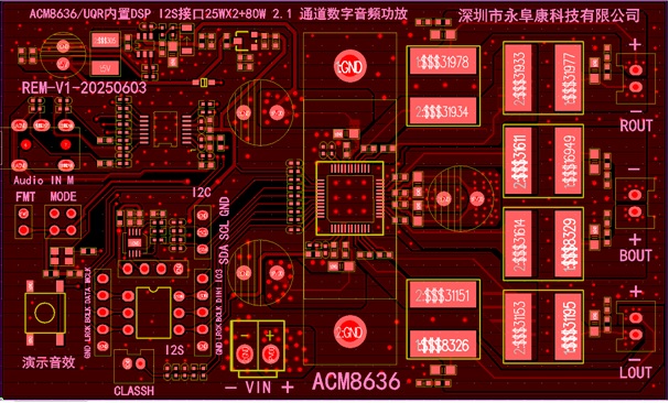 深圳市永阜康科技有限公司一直專注于音頻領(lǐng)域的耕耘,現(xiàn)在大力推廣一款內(nèi)置DSP60W+2X30W大功率I2S輸入2.1聲道數(shù)字功放芯片-ACM8636。供電電壓范圍在 4.5V-26.4V。在2.1通道工作模式, 2 x 8 +4 歐負(fù)載下,輸出功率可以達(dá)到2×30W+60W ; THD+N不超過1%。采用QFP-48(散熱片在背部,支持外接散熱器),良好的散熱性能保證超大功率輸出,可實現(xiàn)無失真的清晰音頻。