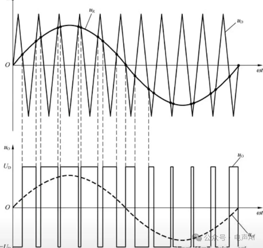 PWM波形看似是方波(高低電平交替),但它的脈沖寬度變化是嚴(yán)格對(duì)應(yīng)模擬輸入信號(hào)的幅度的: