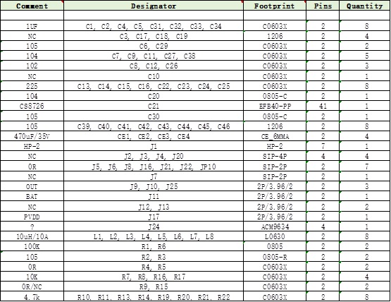 7、CS8726 DEMO板物料清單