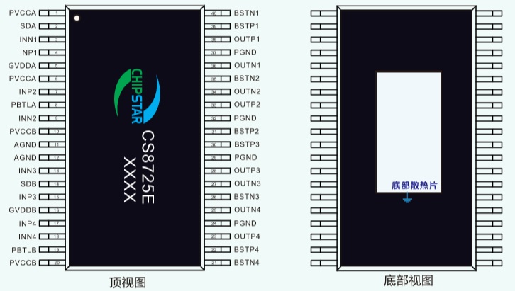 CS8725E提供了特殊的EFA40封裝形式供客戶選擇,合適的封裝尺寸為客戶安裝散熱器件提供了最大的方便,其額定的工作溫度范圍為-40℃至85℃。