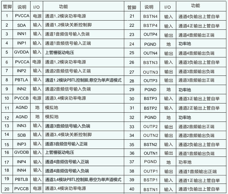 管腳排列以及定義