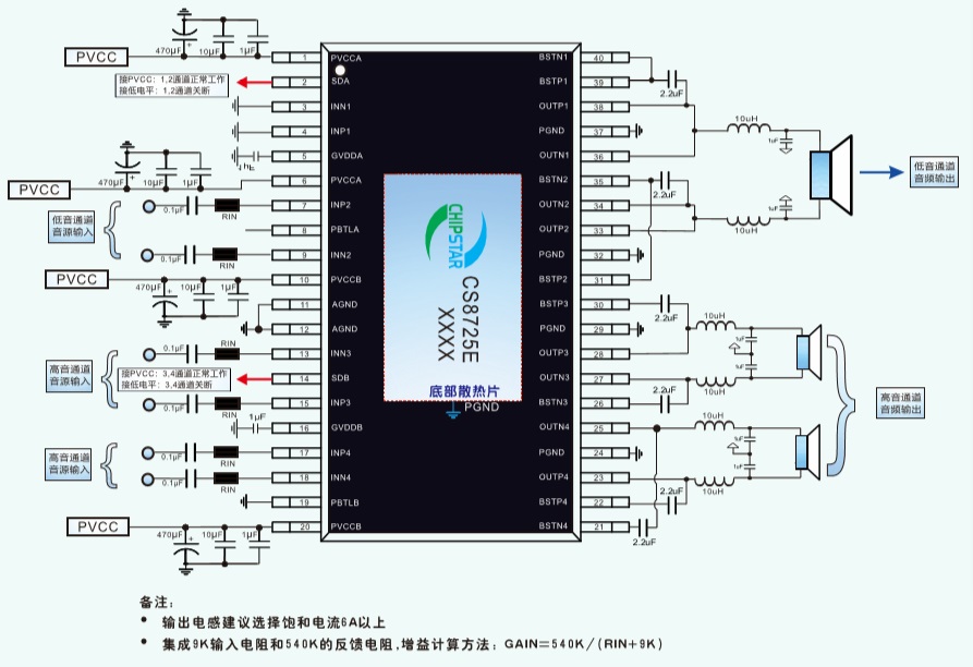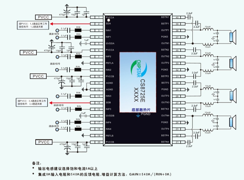 ●單芯片可實現(xiàn)2.0,2.1,4.0等各種音響組合