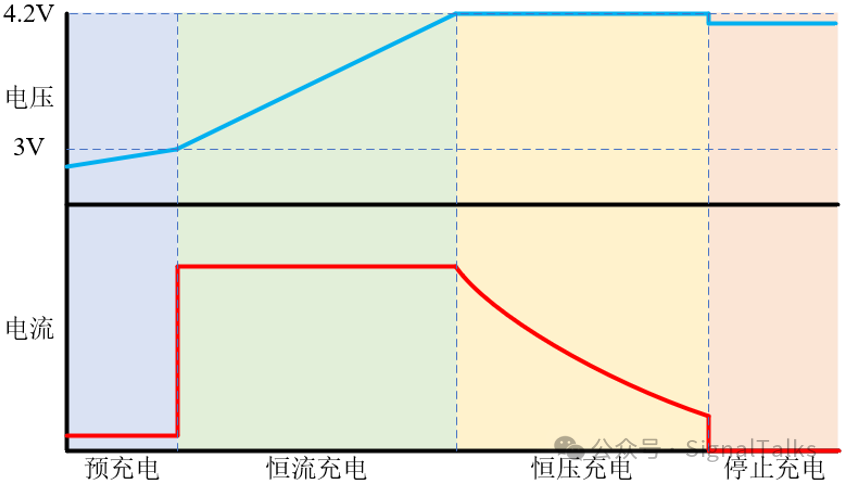 如果不采用恒壓充電,則在恒流充電末期,為了使電池電壓達(dá)到4.2V,就必須繼續(xù)充電,理論上,如果明確了極化電壓值,就可以確定電池充滿時(shí)的測(cè)量電壓值,當(dāng)其達(dá)到該值時(shí)停止充電即可,但是,不同應(yīng)用場(chǎng)景下充電電流不一致,極化電壓很難統(tǒng)一,采用這種方法很容易產(chǎn)生過(guò)充。