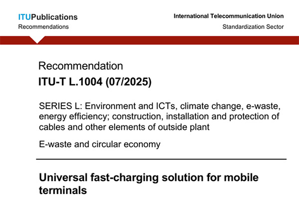 據(jù)中國(guó)信通院消息,由中國(guó)信息通信研究院(簡(jiǎn)稱“中國(guó)信通院”)牽頭,聯(lián)合華為、OPPO、vivo共同制定的《移動(dòng)終端通用快速充電解決方案》(標(biāo)準(zhǔn)號(hào):ITU-T L.1004)已通過國(guó)際電信聯(lián)盟(ITU)的審議,并作為國(guó)際標(biāo)準(zhǔn)正式發(fā)布。這是國(guó)際電信聯(lián)盟史上首個(gè)為移動(dòng)終端制定的全球性通用快速充電標(biāo)準(zhǔn)。