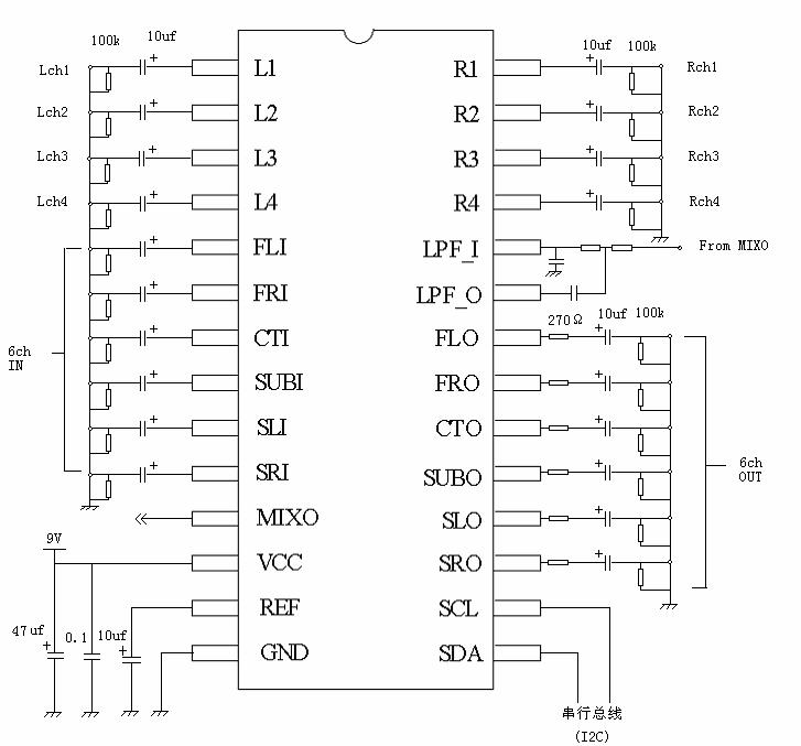 內(nèi)置2 聲道——6 聲道轉(zhuǎn)換器和副低頻低通濾波器;
