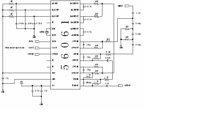 產(chǎn)品功能: CMOS 工藝制成的數(shù)字音調(diào)控制電路。其功能為音調(diào)頻率轉(zhuǎn)換,通過A/D 轉(zhuǎn)換器把輸入信號(hào)采樣進(jìn)電路中,轉(zhuǎn)換成樣本頻率后通過D/A 轉(zhuǎn)換器送出電路