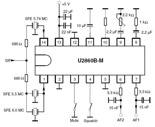 U2860B/U2860/AT2860(雙通道電視系統(tǒng)FM伴音解調(diào)IC) |