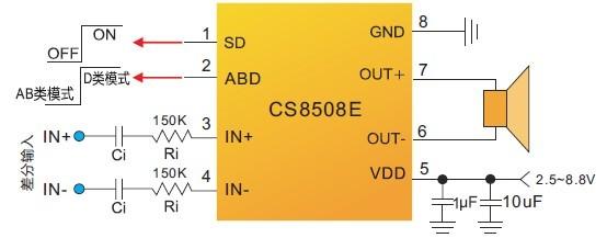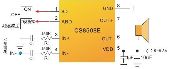 當(dāng)前位置:首頁(yè)->產(chǎn)品展示->功放IC->CS8508E(AB類/D類切換8W單聲道音頻功放IC)