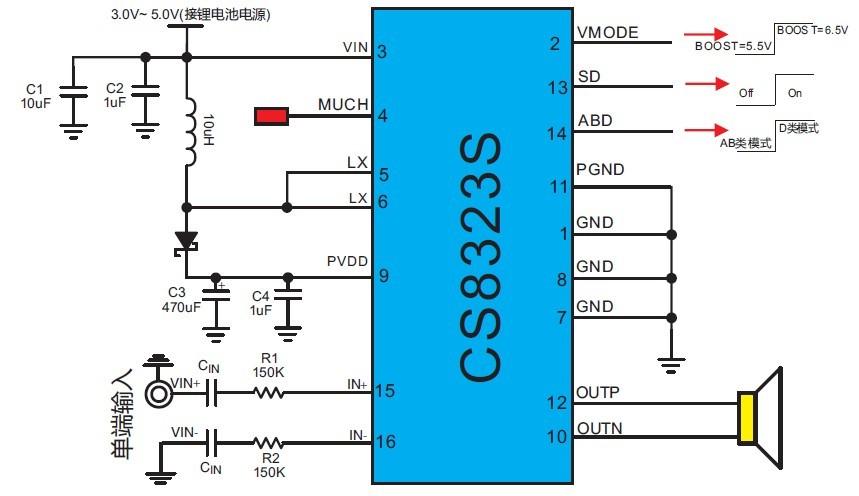 5W/2.7V-5.5V(內(nèi)置升壓模塊)/4Ω |