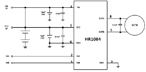 HR8833為玩具、打印機和其它電機一體化應用提供一種雙通道電機驅動方案。HR8833有兩路H橋驅動,可以驅動兩路刷式直流電機,或者一個雙極步進電機,或者螺線管或者其它感性負載。 |