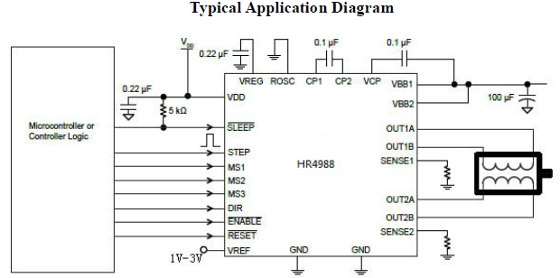 HR4982是一種便于使用的內(nèi)部集成了譯碼器的微特步進(jìn)電機驅(qū)動器。其設(shè)計為能使雙極步進(jìn)電機以全、半、1/32和1/128步進(jìn)模式工作。步進(jìn)模式由邏輯輸入MSx選擇。輸出驅(qū)動能力達(dá)到35V和±2A。HR4982包含一個工作在慢衰或混合衰減模式的固定關(guān)閉時間的電流調(diào)節(jié)器。 |