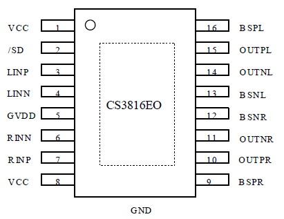 產(chǎn)品名稱: CS3816(無(wú)電感15W立體聲D類音頻功放IC)