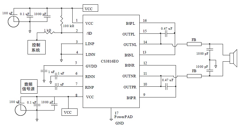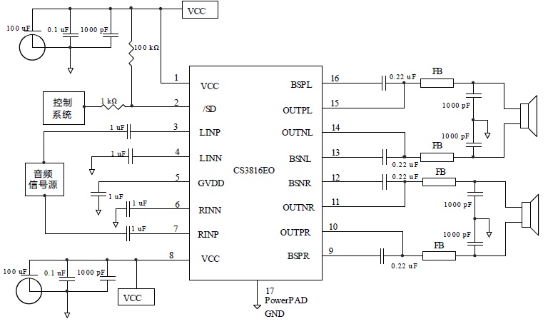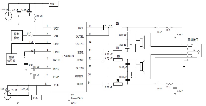當(dāng)前位置:首頁(yè)->產(chǎn)品展示->功放IC->CS3816(無(wú)電感15W立體聲D類音頻功放IC)
