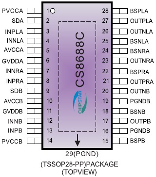 無濾波2X25W立體聲D類功放IC,管腳兼容TPA3110 |