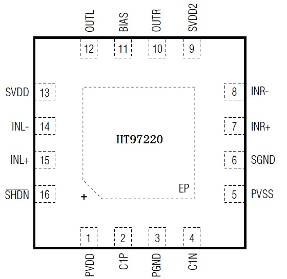 HT97220 2X125mW/5.0V/32Ω QFN-16 2.5V-5.5V 免電容高保真差分輸入125mW立體聲G類耳機放大IC,管腳兼容MAX97220/MAX9722/LM4817/SGM4917 MAX97220/MAX9722/LM4917/SGM4917