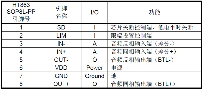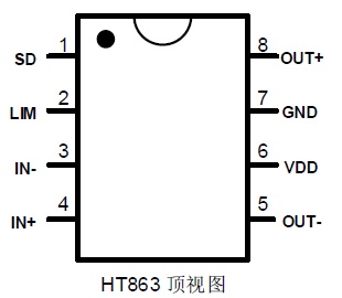 產(chǎn)品名稱: HT863(具有任意配置限幅功能的10W單聲道高保真D類音頻功放IC)