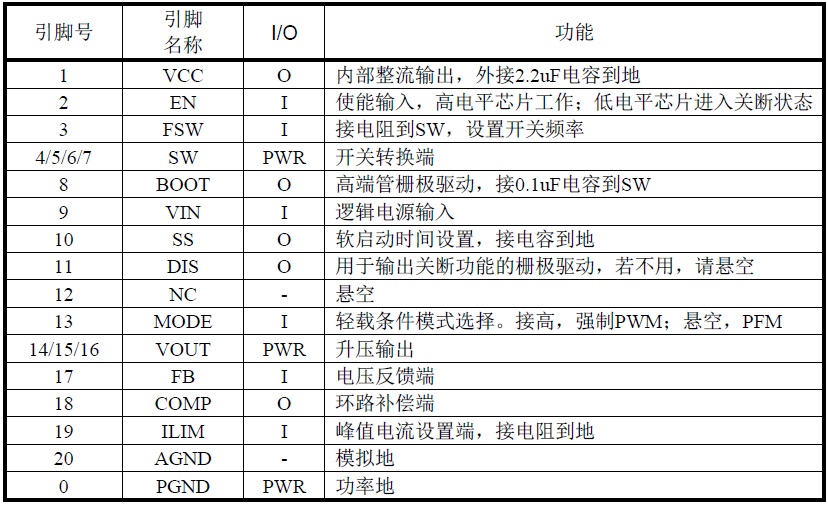 輸入電壓范圍VIN:2.7V-13V;輸出電壓范圍VOUT:4.5V-13V;內(nèi)部固定峰值電流:10A