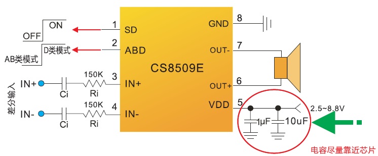 當(dāng)前位置:首頁->產(chǎn)品展示->功放IC->CS8509(超低EMI、AB類/D類切換8W單聲道音頻功放IC)