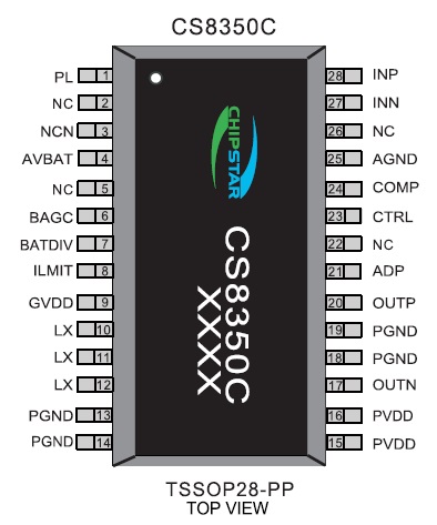 CS8350C的全差分架構(gòu)和極高的PSRR有效地提高對(duì)RF噪聲的抑制能力。無(wú)需濾波器的PWM調(diào)制結(jié)構(gòu)及內(nèi)置的BOOST升壓模塊 ,以及CS8350C采用專(zhuān)有的 AERC((Adaptive Edge Rate Control)技術(shù),在音頻全帶寬范圍內(nèi)極大地降低了EMI的干擾,對(duì)60cm的音頻線(xiàn),在FCC的標(biāo)準(zhǔn)下具有超過(guò)20dB的裕量,另外CS8350C內(nèi)置了過(guò)流保護(hù),短路保護(hù)和過(guò)熱 保護(hù),有效的保護(hù)芯片在異常的工作條件下不被損壞。CS8350C提供了纖小的的TSSOP28-PP封裝形式供客戶(hù) 選擇,其額定的工作溫度范圍為-40℃至85℃。