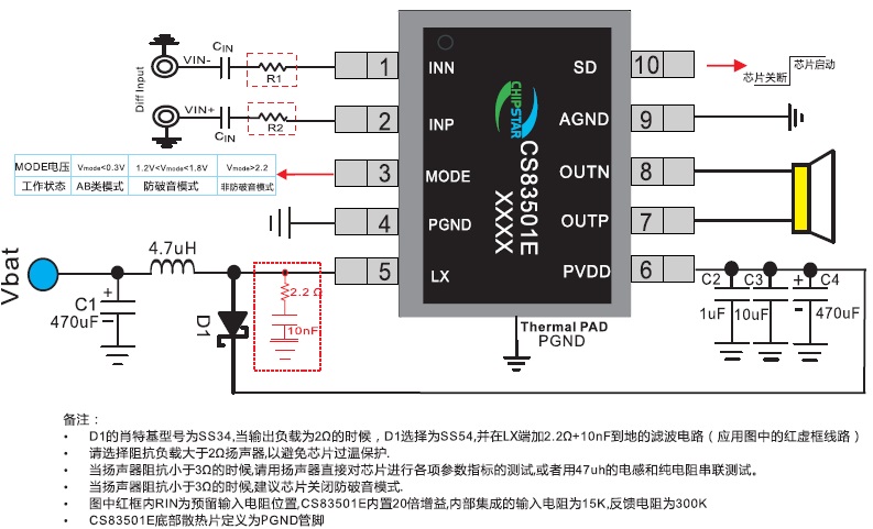 當(dāng)前位置:首頁(yè)->產(chǎn)品展示->功放IC->CS83501(自帶升壓?jiǎn)喂?jié)鋰電恒定8W功率單聲道AB/D類(lèi)切換音頻功放IC)