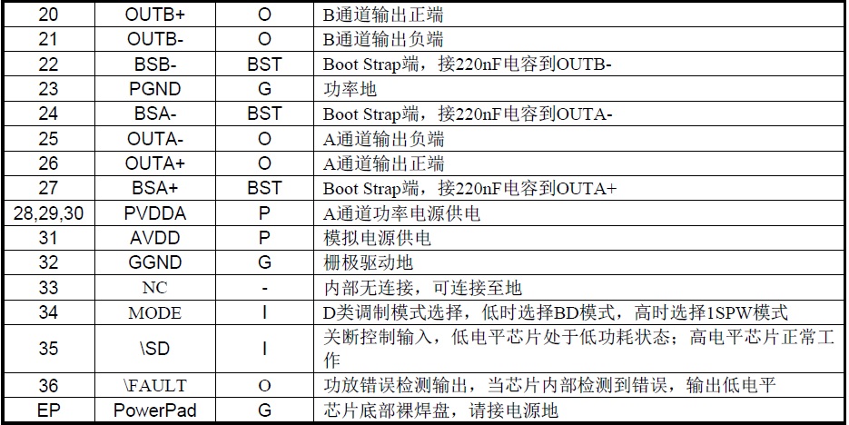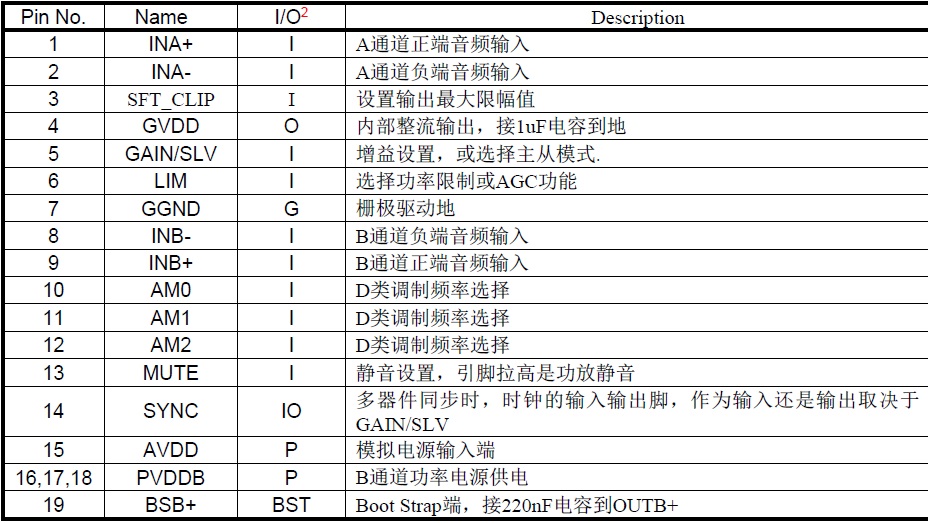 具有防破音功能的免電感濾波2×20W D類立體聲音頻功放 |