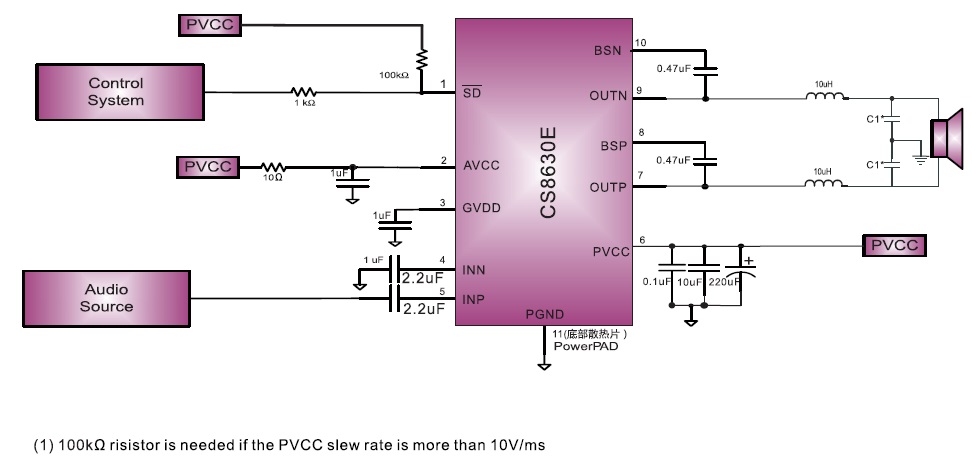 CS8630E是一款32W單聲道高效D類音頻功率放大電路。先進的EMI抑制技術(shù)使得在輸出端口采用廉價的鐵氧體磁珠濾波器就可以滿足EMC要求。CS8630E單通道音頻功率放大 器是為需要輸出高質(zhì)量音頻功率的系統(tǒng)設計的,它采用表面貼裝技術(shù),只需少量的外圍器件,便使系統(tǒng)具備高質(zhì)量的音頻輸出功率。