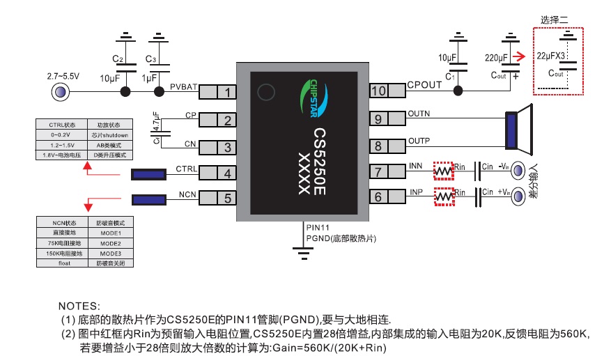 當(dāng)前位置:首頁->產(chǎn)品展示->功放IC->CS5250(無電感電荷泵升壓5.3W防破音單聲道音頻功放IC)