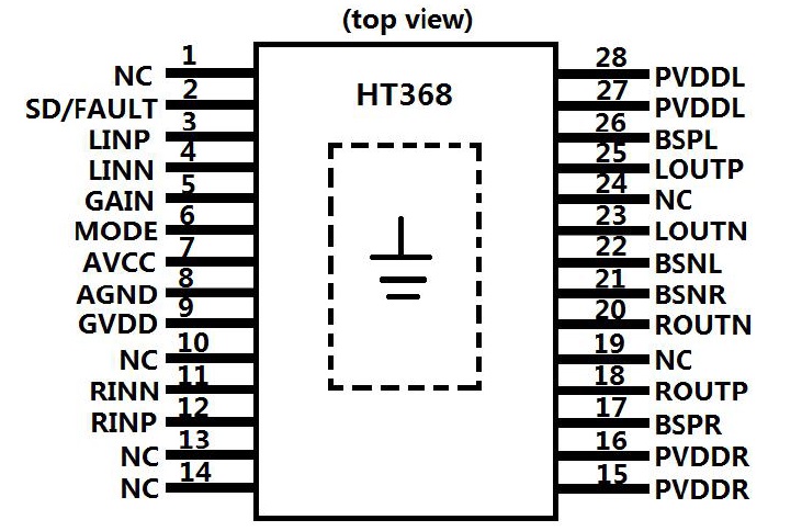 當前位置:首頁->產(chǎn)品展示->功放IC->HT368(20W立體聲無電感D類功放IC) |