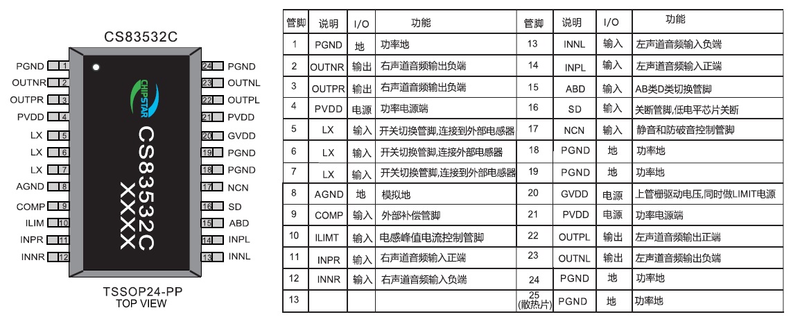 當前位置:首頁->產(chǎn)品展示->功放IC->CS83532(內(nèi)置升壓8W雙聲道F類音頻功放IC) |