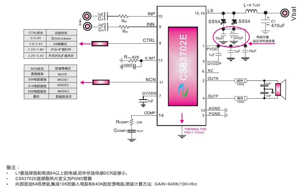 CS83702(單節(jié)鋰電池3.7V供電內(nèi)置升壓18W單聲道D類音頻功放IC) |