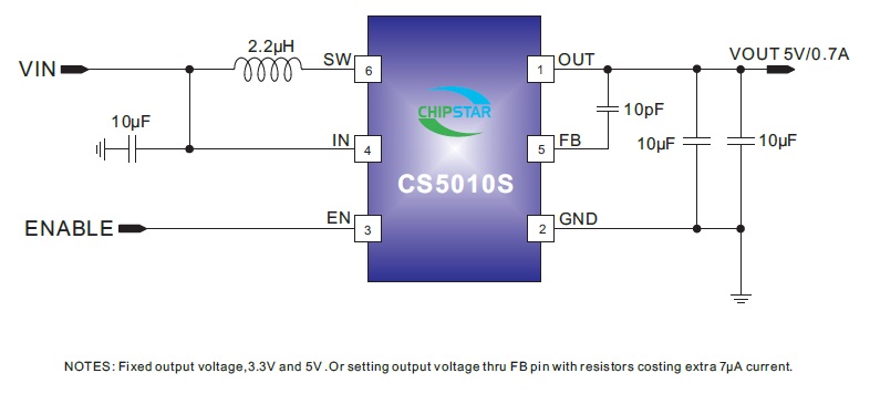CS5010S是一 款高效同步升壓轉(zhuǎn)換器,具有低至2µA的超低靜態(tài)電流。它能夠從低壓電源輸出至少3W的功率,即5V輸出時(shí)為0.7A。