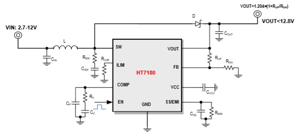 產(chǎn)品名稱: HT7180(具有10A開關(guān)的12.8V輸出DC-DC升壓IC)