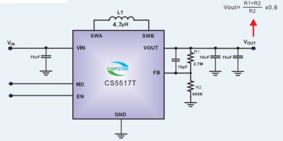 CS5518T是一款超微小型、超低功耗,高效率,升降壓一體DC-DC調(diào)整器.最大電流輸出能力1.6A,低功耗靜態(tài)電流8uA,輸入電壓范圍3~5V