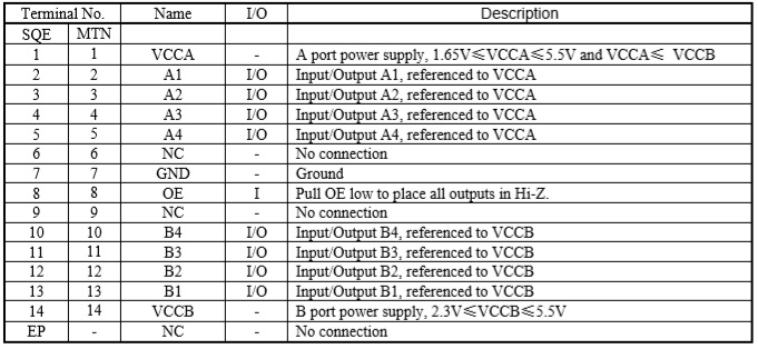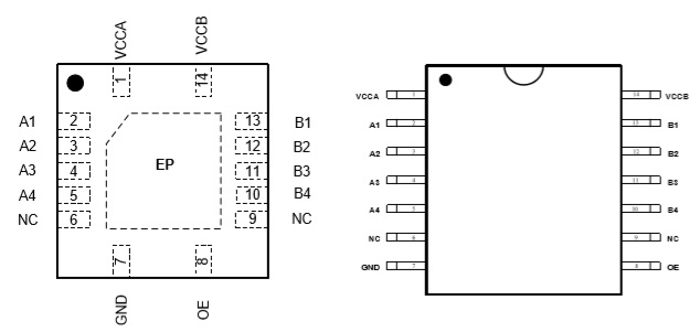 產(chǎn)品名稱: TXS0104/TXB0104/HT0104(4位雙向電平轉(zhuǎn)換芯片)