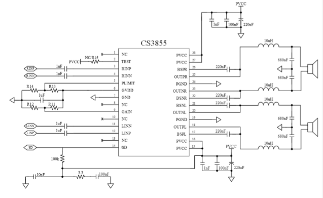 CS3855EO 是一款典型輸出功率為55W立體聲的D類音頻功率放大電路,適用于拉桿音箱、高級(jí)桌面音響等場合。