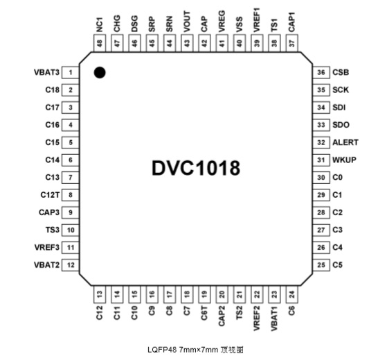 DVC1018是一款采用車規(guī)級高壓BCD工藝設(shè)計的9-18節(jié)鋰電池組監(jiān)控芯片,通過四線式SPI接口與上位機(jī)進(jìn)行通信,形成一套完整的電池組管理系統(tǒng)(BMS)。