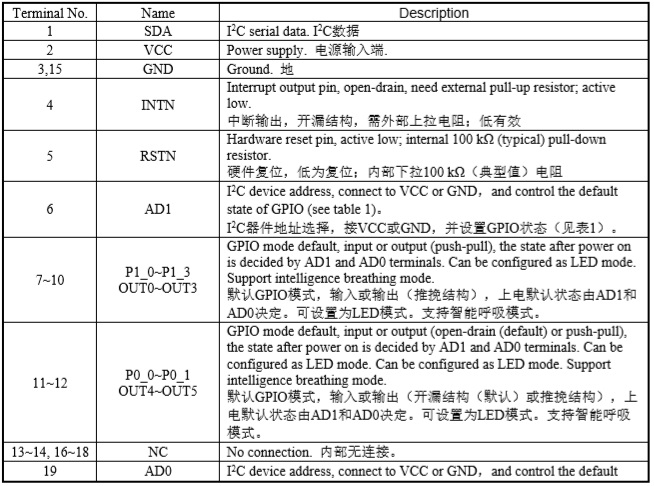 產(chǎn)品名稱: AW9106/HTR3306(I2C接口、可擴(kuò)展GPIO、6路呼吸燈控制器IC)