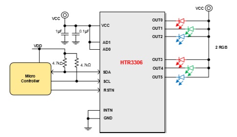 當(dāng)前位置:首頁(yè)->產(chǎn)品展示->RGB LED呼吸趣味燈驅(qū)動(dòng)IC->AW9106/HTR3306(I2C接口、可擴(kuò)展GPIO、6路呼吸燈控制器IC)