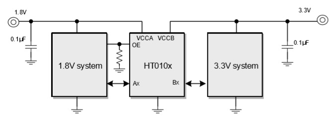 HT0101是一款1路雙向電平轉(zhuǎn)換器,其使用兩個(gè)獨(dú)立的供電VCCA和VCCB。電壓較低的電平信號(hào)接入A端口,支持1.65V~5.5V電壓,其對(duì)應(yīng)VCCA; 電壓較高的電平信號(hào)接入B端口,支持2.3V~5.5V電壓,其對(duì)應(yīng)VCCB。 |