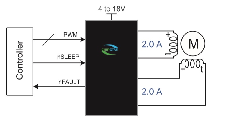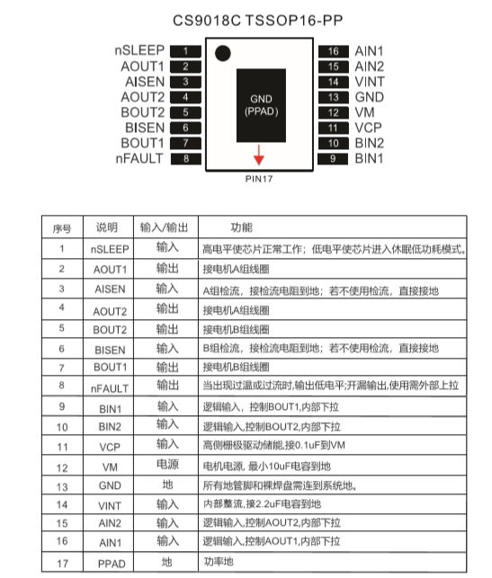 產(chǎn)品名稱: CS9018(4V-18V雙通道H橋2A電機驅(qū)動芯片)