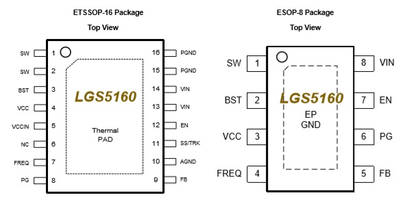 LGS5160 輸入電壓范圍:4V-60V;輸出電壓范圍:1V-VIN ;集成上下功率管,最大輸出電流2.5A ESOP-16/TSSOP-16 4V-60V 60V/2.5A寬輸出范圍,低紋波,同步降壓轉換器