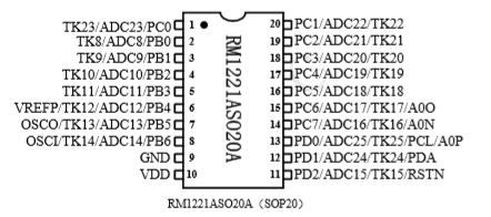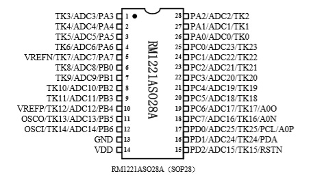 RM1221A 基于8051指令的高速1T增強(qiáng)型MTP SOC SOP28/TSSOP28/SOP20/TSSOP20/SOP16 2.3V-5.5V 26 路觸控按鍵和 PWM 的增強(qiáng)型 8051SOC BF7612CM、CMS79FT738、CMS89F6285B、SC92F8463B、HC89F303C