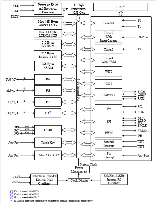 -- 可外接 2~16MHz 晶振或 32.768KHz 晶振