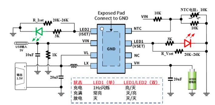 產(chǎn)品功能: LGS5600 是一款集成降壓轉(zhuǎn)換器、鋰電池充電管理、 電池充電狀態(tài)指示的鋰電池充放電管理專用芯片,為 USB充干電池提供完整的電源解決方案。