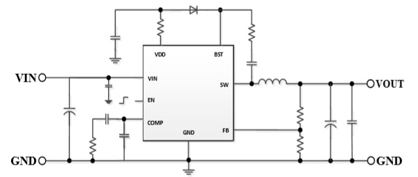 NDP1360KC是一款全集成高效率同步降壓DC/DC轉(zhuǎn)換器。其內(nèi)部采用固定開關(guān)頻率、平均電流控制模式構(gòu)架。能夠為負(fù)載持續(xù)提供高達(dá)6A的輸出電流。,NDP2821KC具有出色的線路和負(fù)載調(diào)節(jié)能力。該芯片支持7V至32V的極寬輸入電壓范圍,輸出電壓從3.3V至25V可調(diào)。 |