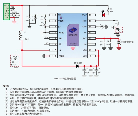 IU5207可以根據(jù)當前電池電壓,通過DP/DM來向輸入端申請快充電壓;