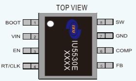 IU5530E提供纖小的ESOP8封裝類型供客戶選擇, 其額定的工作溫度范圍為-40℃至85℃。