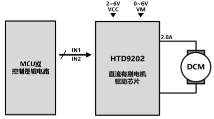 HTD9202具有一個PWM (IN1/IN2)輸入接口。